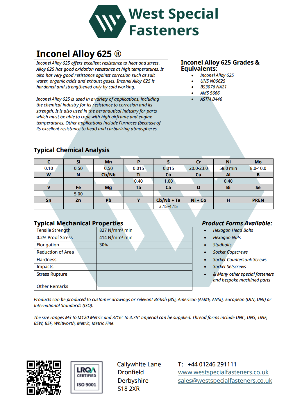 West Special Fasteners operates a fully accredited ISO 9001 quality system with comprehensive documentation and batch traceability. All material certificates and inspection reports are supplied as standard, ensuring complete confidence in the origin and integrity of every component.